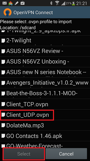 حال پروفایل های کانکشنی که در فایل فشرده ی Open VPN دانلود کردید رو از حالت فشرده خارج کرده و به رم خود انتقال دهید